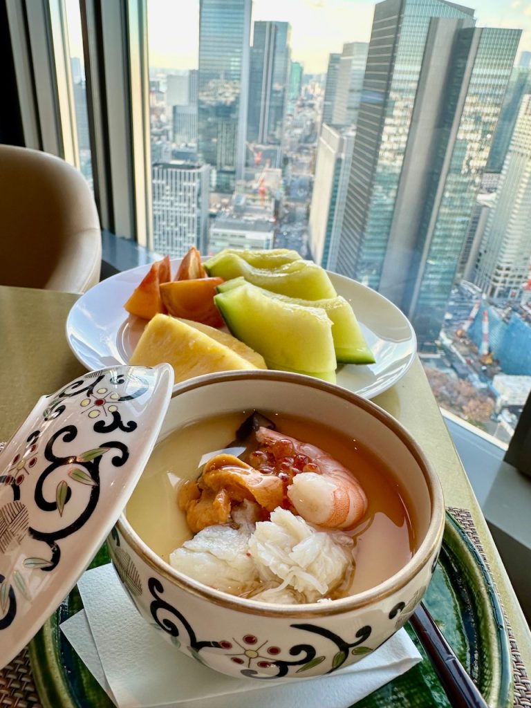 K’Shiki丰盛的早餐也是酒店非常自豪的,早上9点过后是巅峰,整个餐馆座无虚席,日式早餐,西式餐点,琳琅满目。来到日本,自然要品尝日式早餐:一碗日式米饭,几样日式小菜如芝麻豆腐与腌渍沙丁鱼,一碗蛤蜊味增汤,搭配奢华美味的海胆茶碗蒸(chawanmushi),还有美味的日产水果如日式蜜瓜与葡萄,果真是一日之计在于晨!