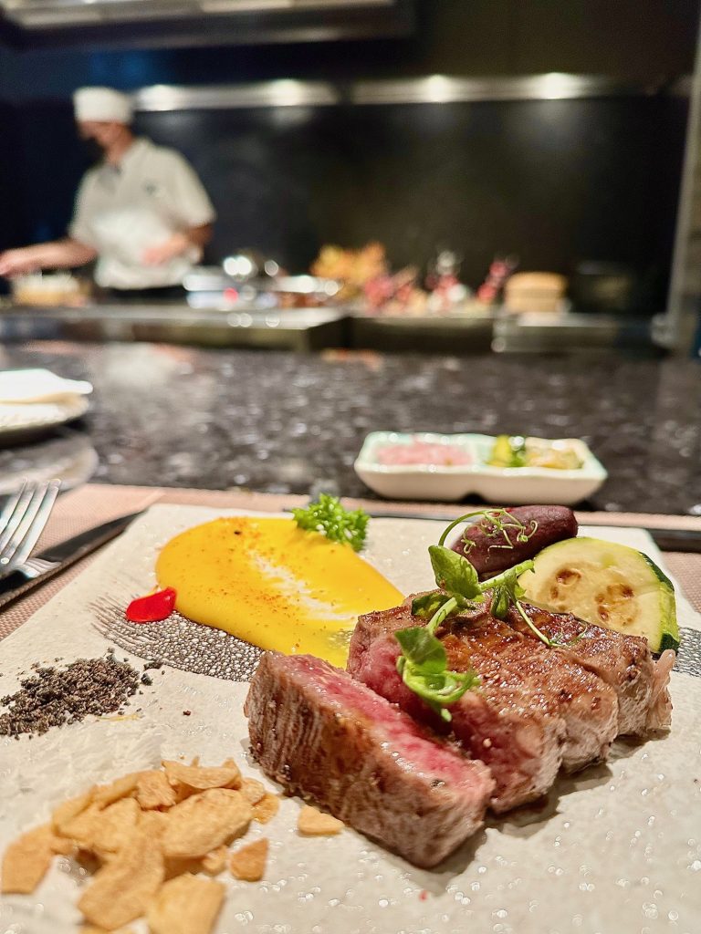 亮点菜色包括茶碗蒸,煎龙虾,带子,迷你汉堡,还有肉质细嫩的和牛牛排(wagyu)!还有,别错过火焰表演!